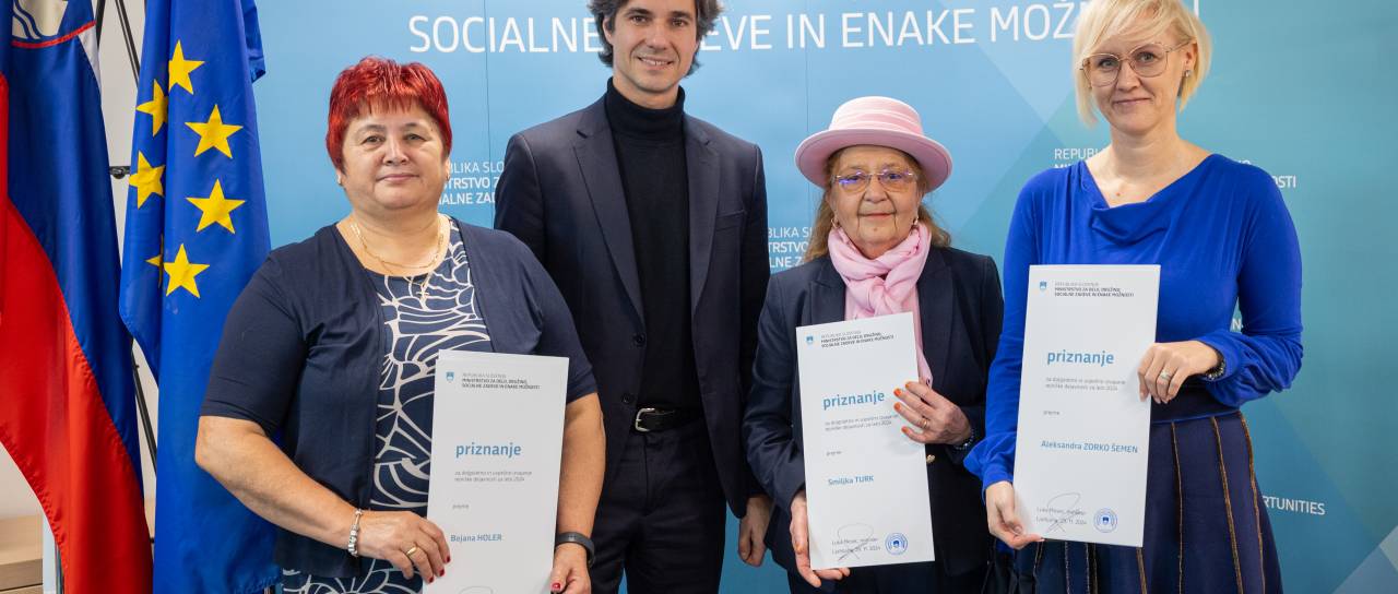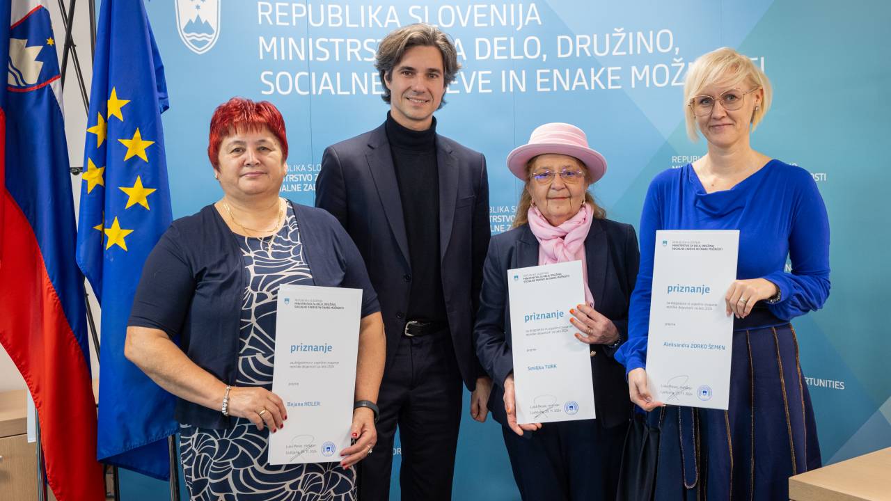 Minister za delo, družino, socialne zadeve in enake možnosti Luka Mesec je podelil priznanja za dolgoletno in uspešno izvajanje rejniške dejavnosti. Priznanja so prejele tri izjemne rejnice: Aleksandra Zorko Šemen iz Turnišča, Smiljka Turk iz Puconcev in Bojana Holer iz Svete Ane v Slovenskih goricah.