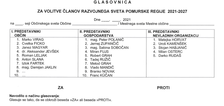 Predsednik sveta regije, župan Moravskih Toplic Alojz Glavač, je kljub razočaranju, da med pomurskimi občinami ni dogovora, na drugi strani pa so predstavniki gospodarstva in nevladnih organizacij podali usklajen predlog, dal na glasovanje naslednje kandidate: