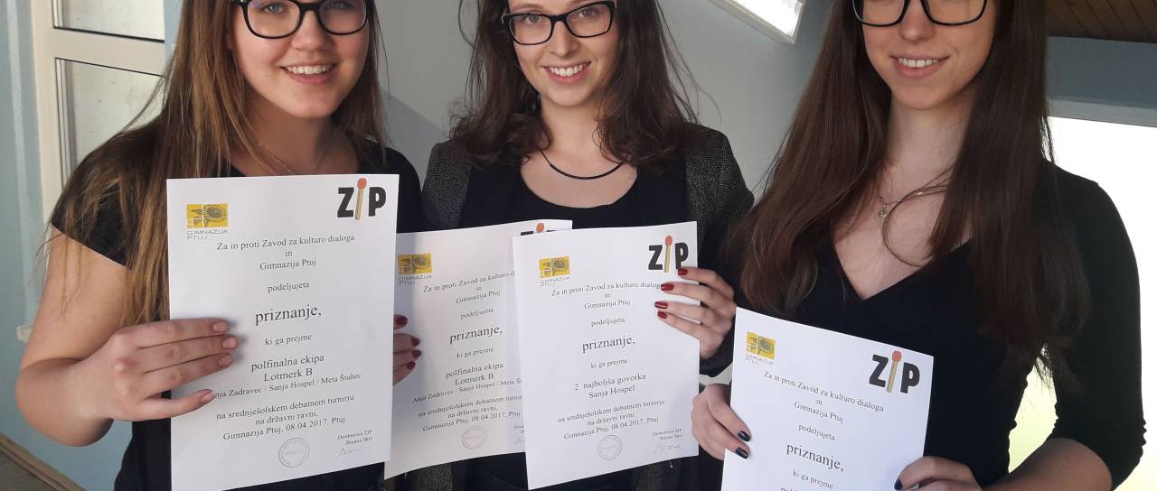 Ljutomerski debaterji so osvojili odlične rezultate. Ekipa Lotmerk B je zasedla tretje mesto v državi, Sanja Hošpel pa je postala druga najboljša debatna govorka v državi.