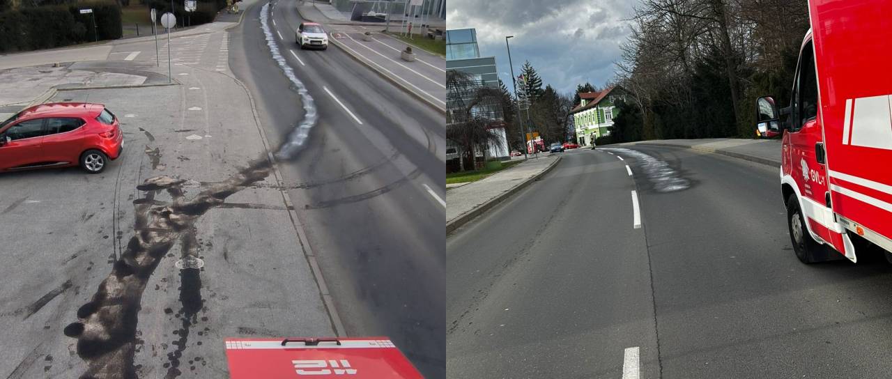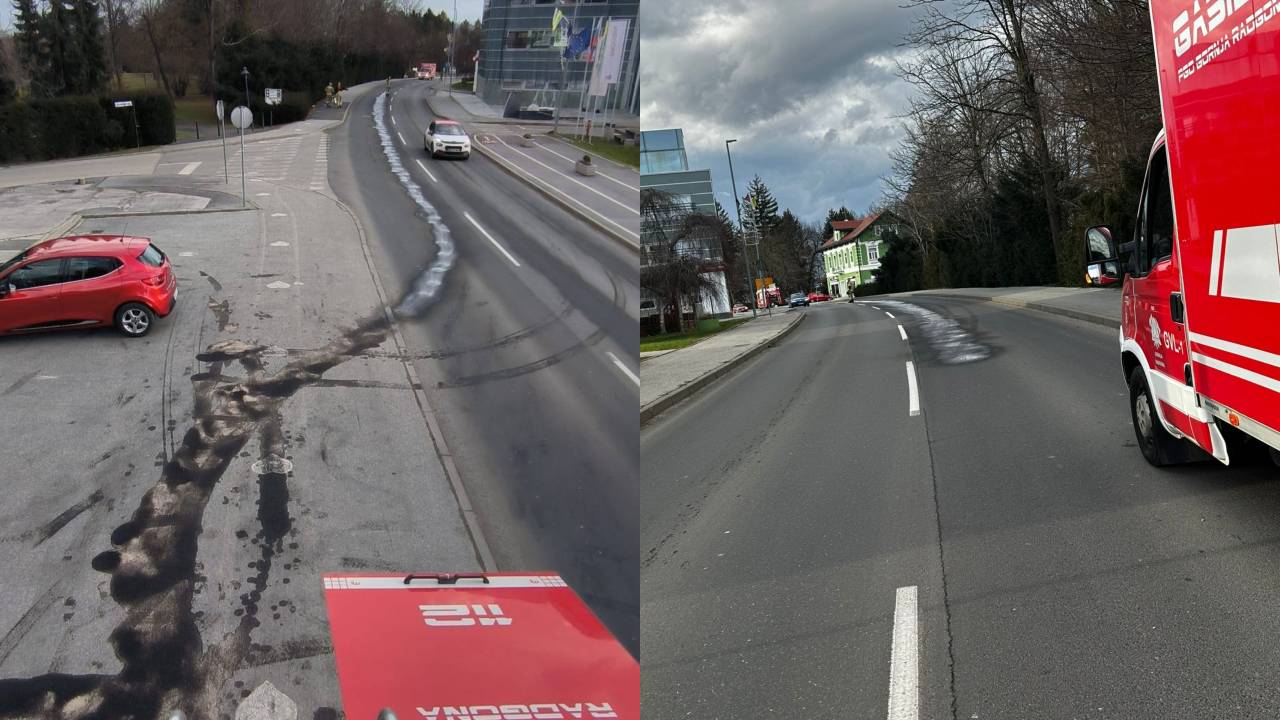 Do razlitja olja je prišlo na Radgonski cesti v Radencih.