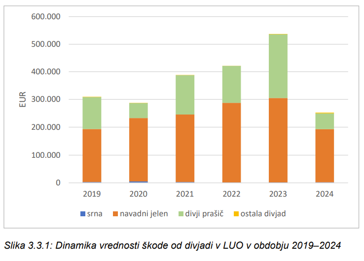 V letih 2023 in 2024 je škoda, ki jo je povzročila divjad znašala 787.509 evrov.