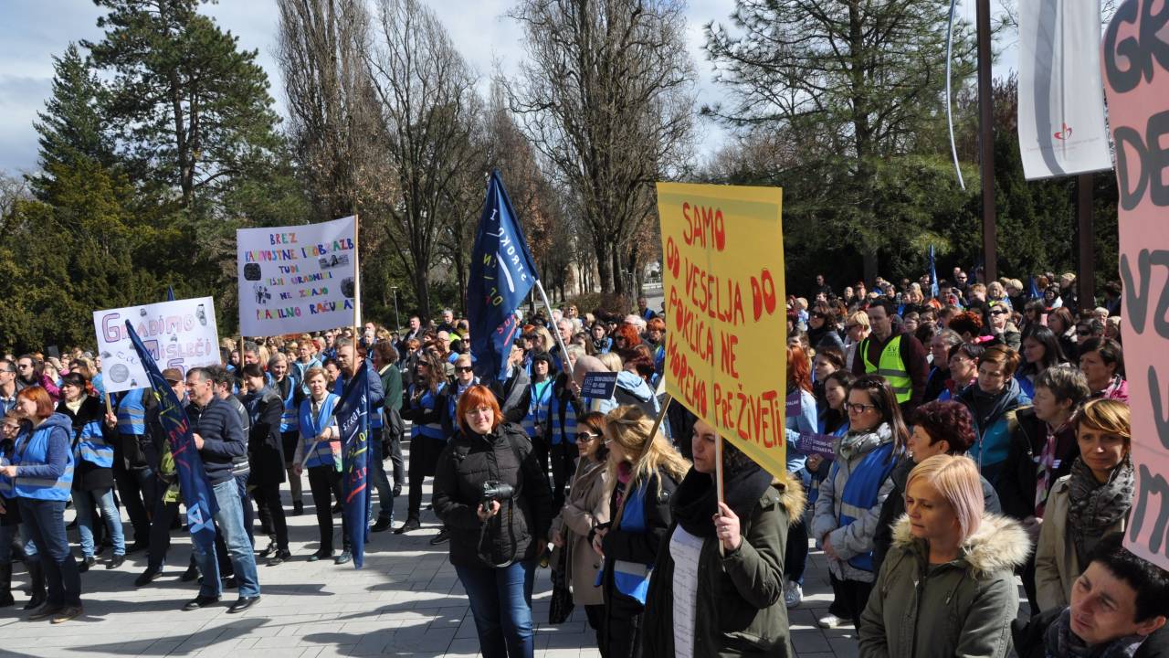 V Ljubljani je zbrane pred poslopjem vlade medtem nagovoril glavni tajnik Sviza Branimir Štrukelj, ki je poudaril, da bo stvar od danes naprej šla do konca.