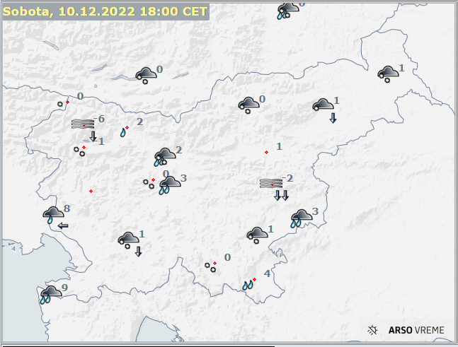 Tudi ponoči bo več padavin v vzhodni polovici Slovenije, kjer lahko pade nekaj centimetrov snega, več seveda v nekoliko višjih legah, a tudi tam verjetno ne več kot 10 centimetrov.
