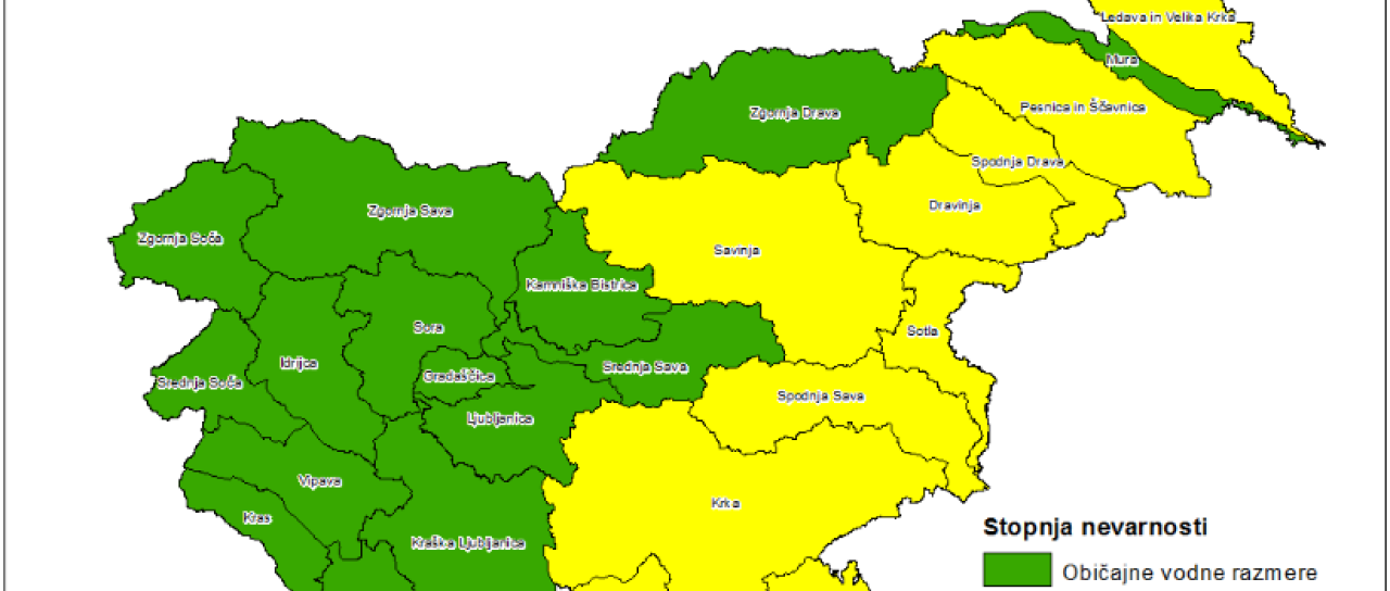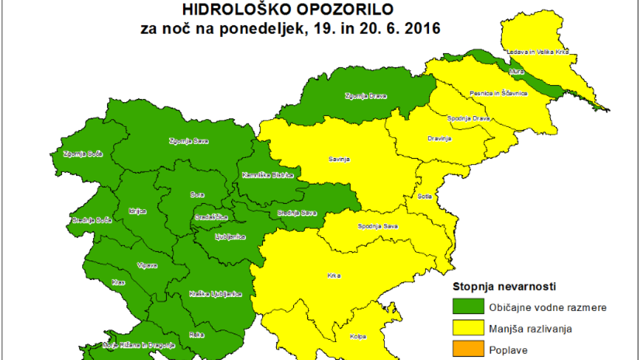 Padavine se bodo tekom današnjega dne okrepile in zajele večji del Slovenije. Ponoči so možni močni nalivi in nevihte. Ob predvideni količini padavin, obstaja nevarnost hitrih porastov in razlivanja manjših hudourniških vodotokov ter potokov na ravninskem delu Pomurja, opozarjajo na spletni strani Arsa.