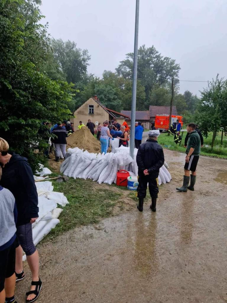Poveljnik civilne zaščite Branko Novak z ekipo rešuje pred poplavo naselje Pristava, prostovoljna gasilska društva pa branijo vasi Mota, Zgornje in Spodnje Krapje ter Cven.