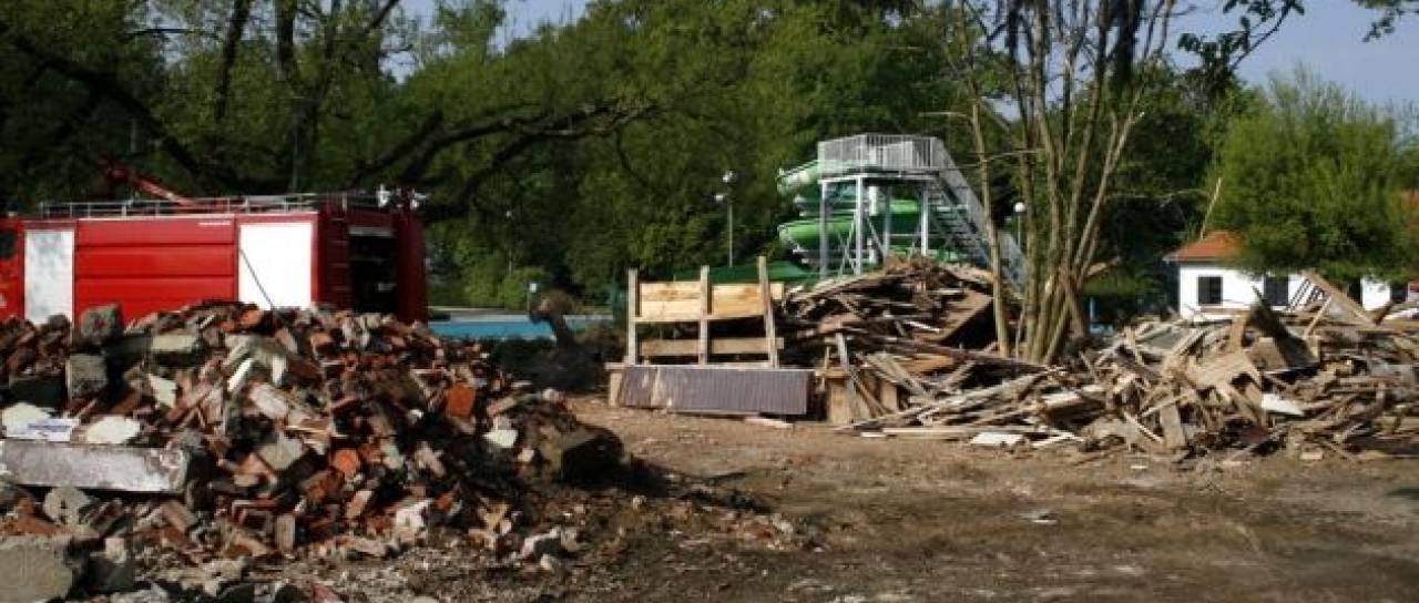 Izvajalci sanacijskih del na soboškem kopališču so v ponedeljek pričeli z rušenjem gostinskega objekta, ki je zaradi dotrajanosti postal nevaren za obiskovalce. Dela naj bi se končala do začetka kopališke sezone.
