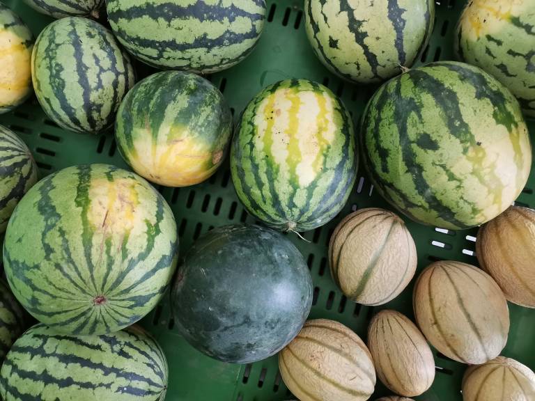 Letos že četrto leto družina goji lubenice, ki so del ponudbe Hanželičeve kmetije. Lubenice so glavna niša mladega kmeta, a v njegovi posodi ob cesti se znajdejo tudi domače melone.