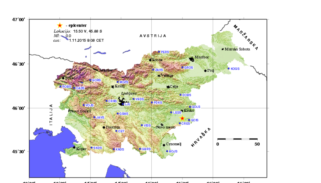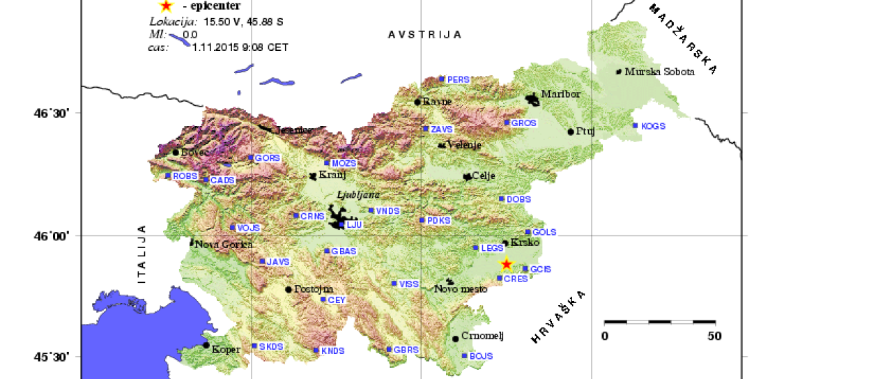 Šibek potresni sunek že včeraj v bližini Mirna