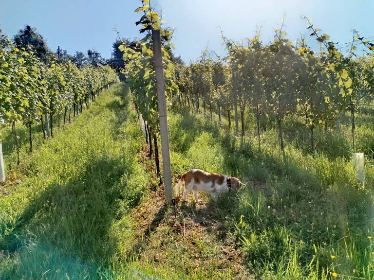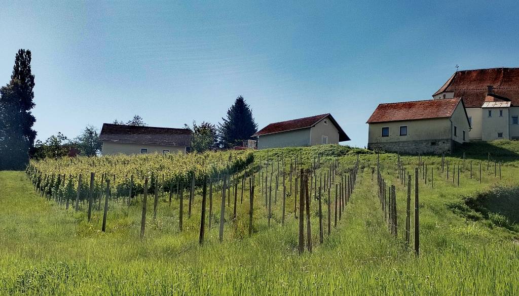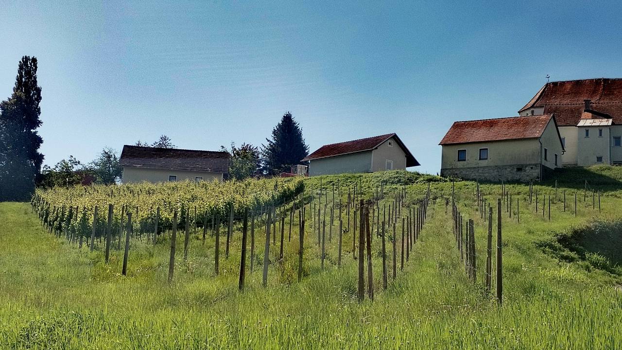 Enega izmed vinogradov v Slovenskih goricah, ki ga vidimo spodaj na sliki, so zaradi bolezni morali skrčiti kar za polovico.