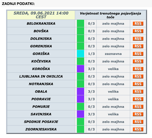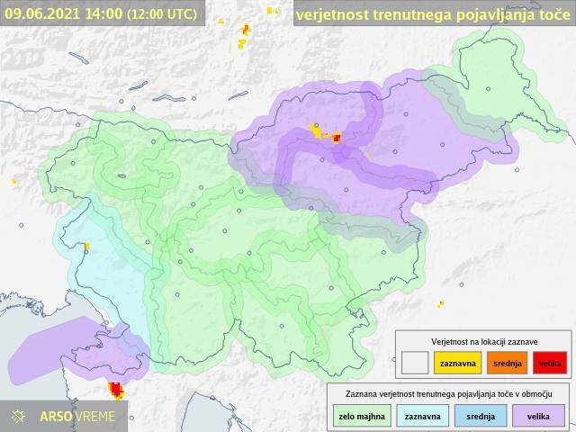 Agencija Republike Slovenije za okolje je tako pred nekaj trenutki za Podravje že izdala najvišje opozorilo za nevarnost trenutnega pojavljanja toče.