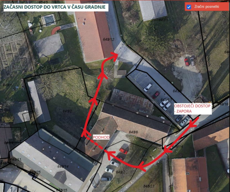 Občina preko svoje spletne strani sedaj obvešča, da bo izvajalec del začel dela v območju parkirišča pri vrtcu, zato se zaradi zagotavljanja varnosti spreminja dostopna pot do vrtca.