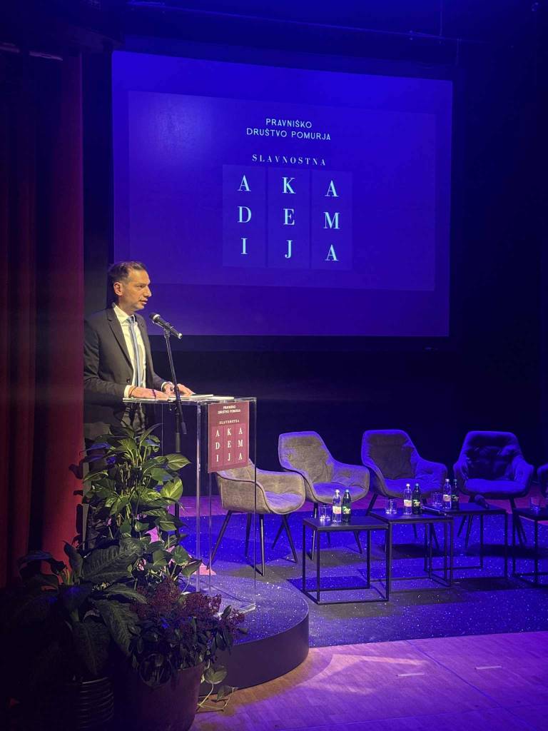 Osrednji nagovor na slavnostni akademiji je pripadel predsedniku Pravniškega društva Pomurja, Jerneju Kuzmiču, ki je zbrane nagovoril z mislimi, ki so dale dogodku posebno težo in presegle običajen protokolarni okvir. Njegov poudarek na poklicanosti pravnika je v dvorani pustil močan odmev.
