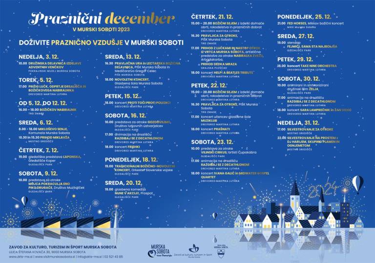 Praznično vzdušje se je v Murski Soboti začelo na predvečer praznika sv. Nikolaja, 5. decembra, in se nato ves mesec nadaljevalo s številnimi glasbenimi in kulturnimi dogodki.