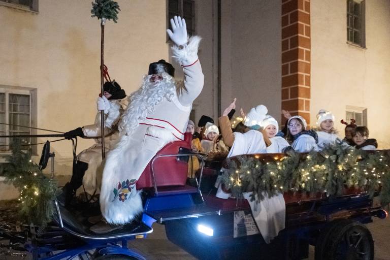 Dedek Mraz je otroke iz mesta in okolice sprejel na grajski ploščadi v Murski Soboti in jim pred gradom pričaral nepozabno doživetje.