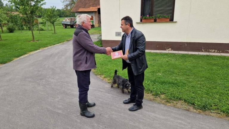 Župan občine Lendava Janez Magyar je včeraj prebivalcem zaselka Mirišče v naselju Hotiza osebno predal nove tablice s hišnimi številkami.