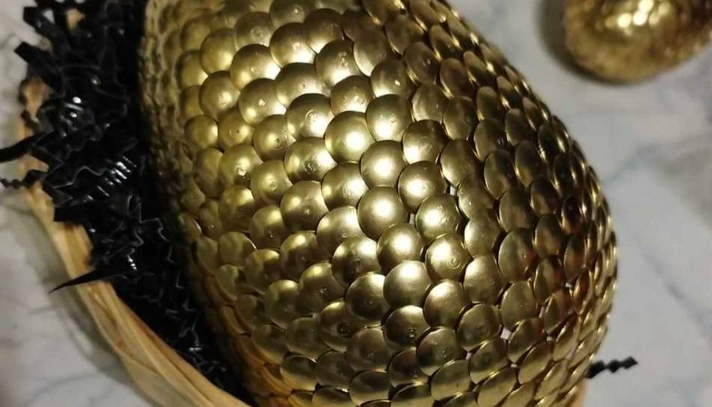 Bralka Sobotainfo je v uredništvo poslala fotografije ročno izdelanega »zmajevega jajca sreče«, ki ga sestavlja 850 žebljičkov, je zapisala.
