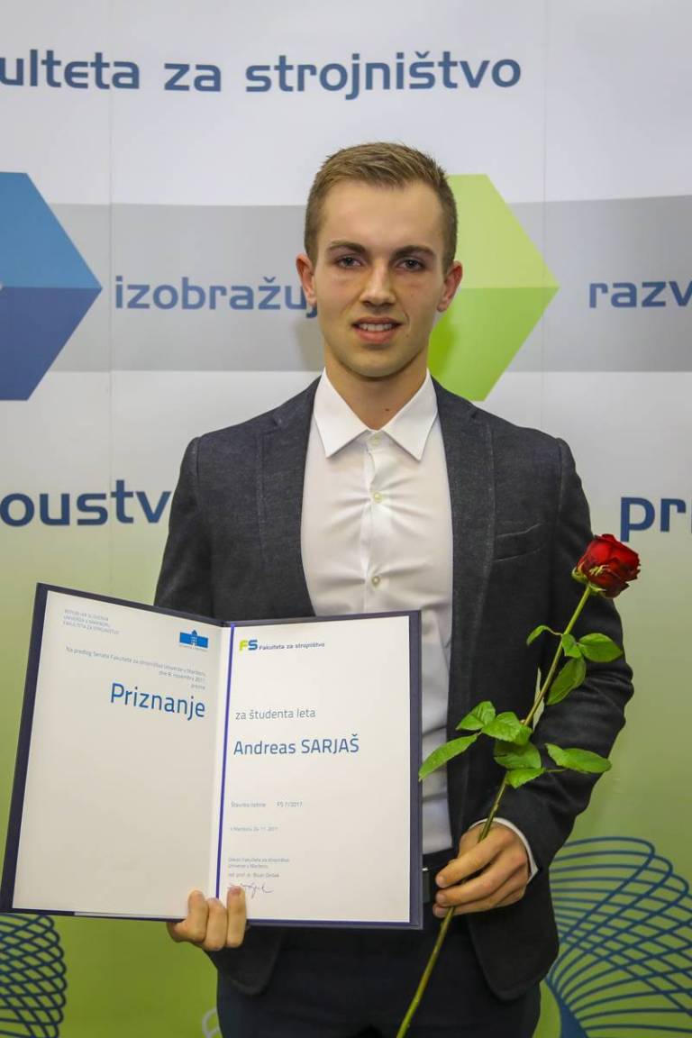 Kot študent leta je priznanje prejel Andreas Sarjaš iz Nedelice in ekipa AGV – avtonomni voziček v kategoriji izjemni raziskovalni ali umetniški dosežek študentov.