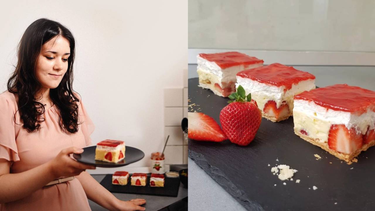»Da se ti sladica res 'zlušta', je treba za fotografijo odrezati več kosov in najti tistega popolnega, kjer so vse plasti enake in preliv najbolj vabljiv,« dodaja.