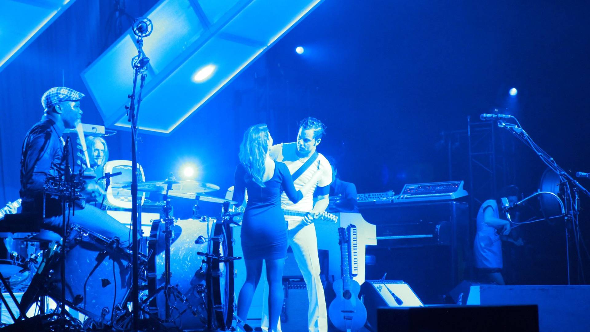 Edina barva luči je bila modra, tri “škatle” nad glasbeniki, ki simbolizirajo številko tri, ki si jo je eksecentrični glasbenik uradno dodal k imenu, pa so delovale kot enostavna, a efektivna kulisa za akustično-električno godbo, ki je na momente zvenela zelo drugače od studijskih različic.