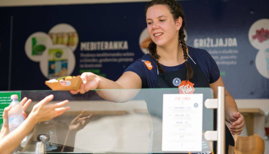 Na mariborskem Glavnem trgu sta se včeraj Tjaša in Pia za zmago potegovali v treh menijih, in sicer »mediteranko« – gre za praženo mediteransko solato s čičeriko, grahovim pirejem in kozicami, »grižljajdo«, ki je ajdova kaša s sladkim krompirjem, panceto in espumo drobnjaka ter zadnji meni, ki ponuja »šnitpoho«, ocvrte kruhke s cimetovim posipom in omako iz kisle smetane z limeto.