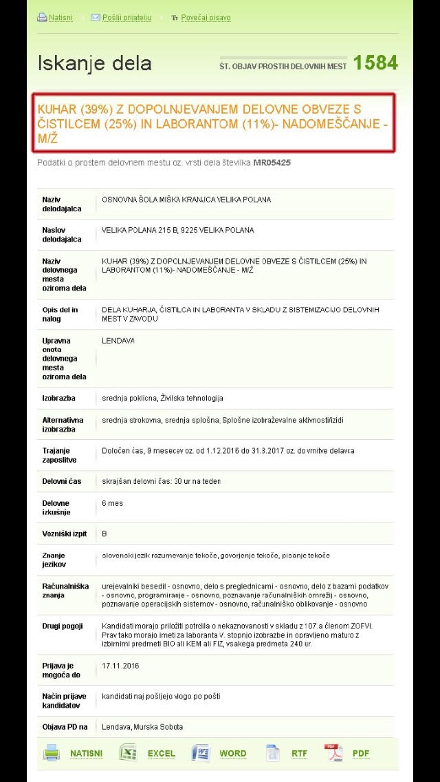 Pred tedni smo tako v medijih že bili priča oglasu šentiljske Osnovne šole Rudolfa Maistra, v kateri so iskali učitelja in čistilca hkrati, tokrat pa so si multipraktika za skrajšan delovni čas 30 ur na teden zaželeli tudi pri nas, na Osnovni šoli Miška Kranjca v Veliki Polani.
