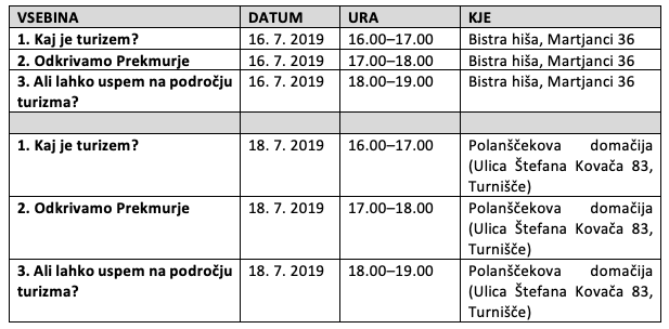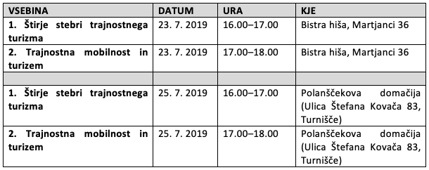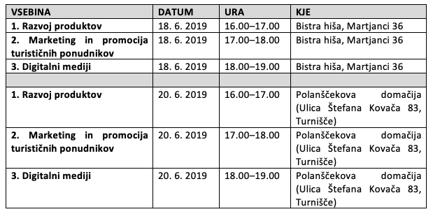 - izvedene bodo delavnice in izobraževanja, ki bodo temeljila na bogatitvi obstoječe turistične ponudbe,