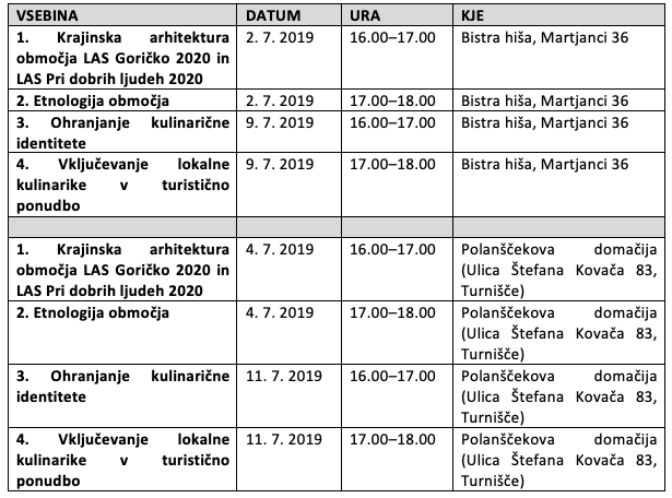 2. ARHITEKTURNO ETNOLOŠKE DELAVNICE ZA OBSTOJEČE IN POTENCIALNE PONUDNIKE NASTANITVENIH KAPACITET IN KULINARIČNE PONUDBE NA OBMOČJU LAS Goričko 2020 in LAS Pri dobrih ljudeh