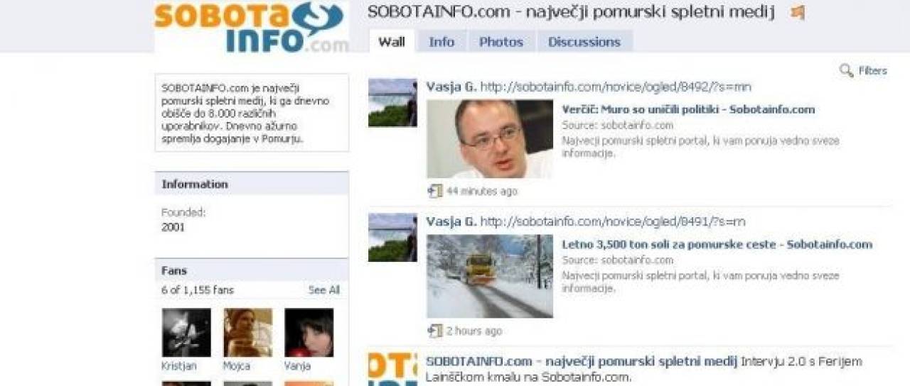 Uporabniki sobotainfo.com lahko sedaj prebirajo aktualne novice, si ogledajo in ocenijo fotografije in video posnetke ter komentirajo tudi na največjem družabnem omrežju Facebook-u.