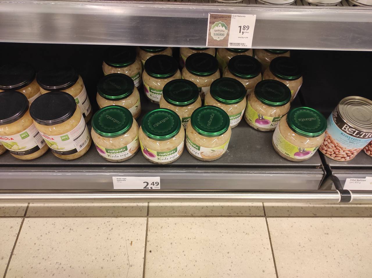 V Tušu je na voljo repa blagovne znamke Natureta, in sicer za 2,49 evra za 530 gramov oziroma 4,70 evrov za kilogram kisle repe.