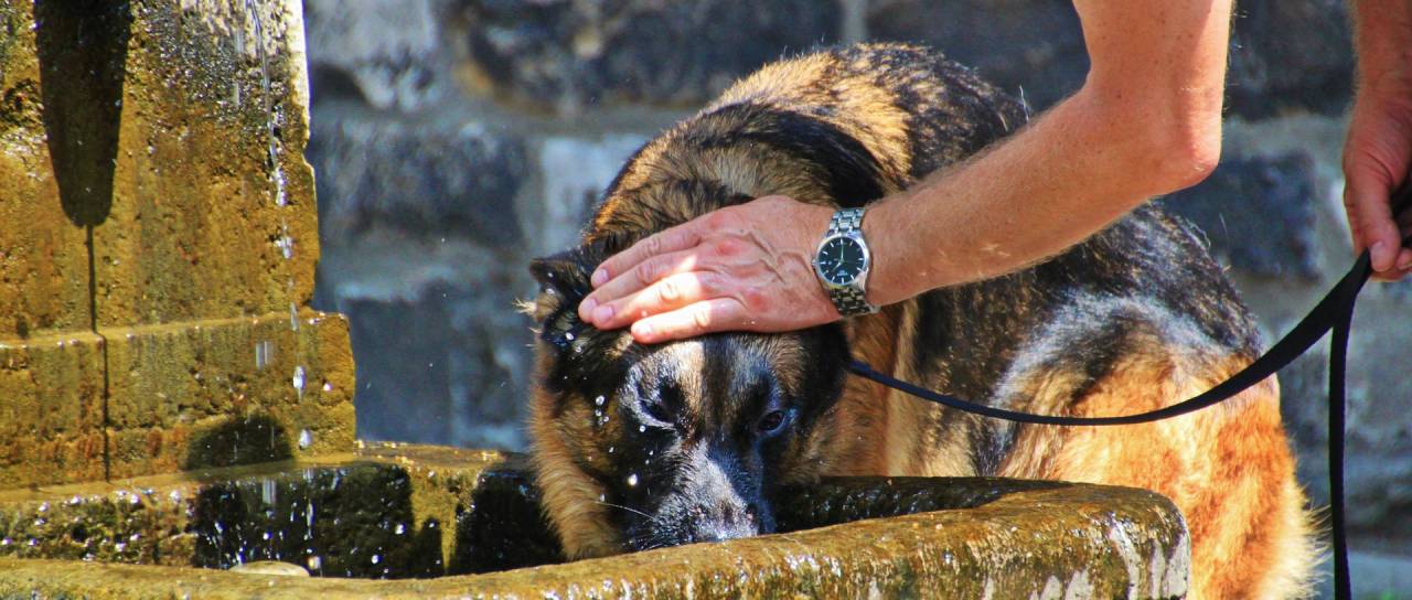 Prva in zagotovo najbolj pomembna stvar v vročih dneh za živali je, da imajo vedno na voljo dovolj sveže vode. Ker psi v koži nimajo znojnih žlez, svojo telesno temperaturo uravnavajo preko dihal. S pohitrenim dihanjem se znižuje telesna temperatura, hkrati pa žival s sapo izgublja tudi telesno tekočino Še toliko bolj pomembno je to dejstvo takrat, ko žival je veliko briketirane hrane, ki je že sama po sebi precej suha. Ne glede na to, kje ste, žival mora vedno imeti dovolj sveže vode.