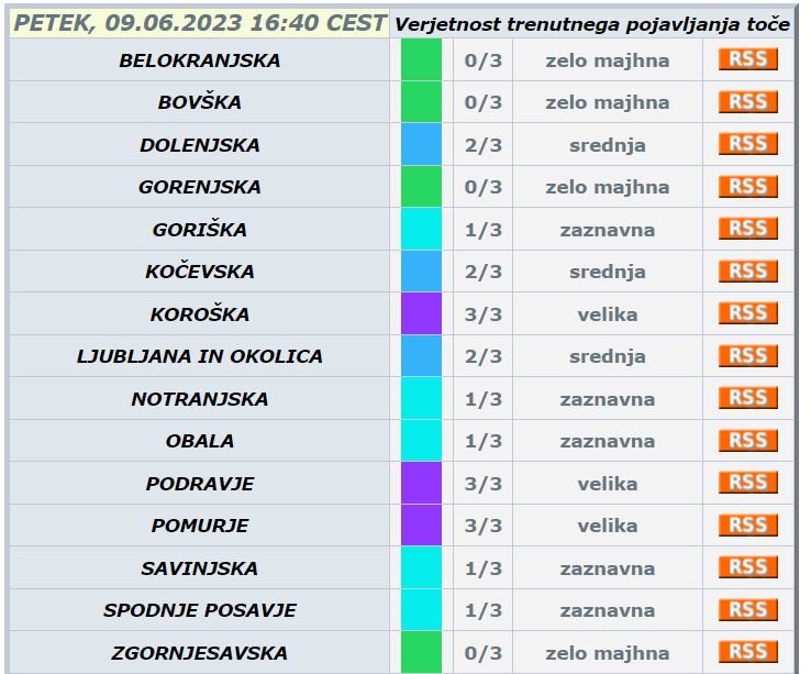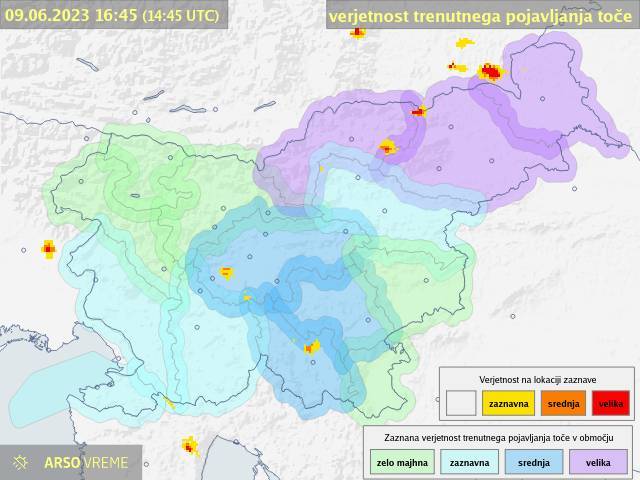 Agencija Republike Slovenije za okolje je za Podravje, Koroško in Pomurje izdala vijoličasto opozorilo za veliko verjetnost trenutnega pojavljanja toče.