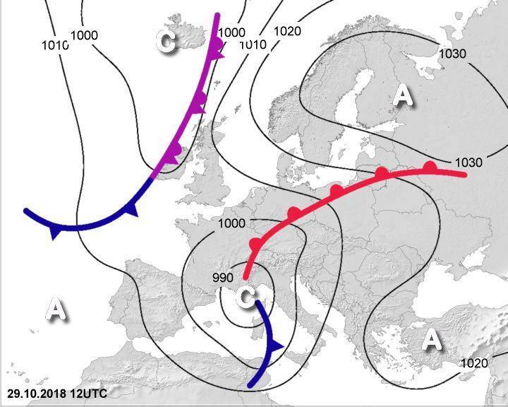 Kombinacija velikih razlik v zračnem tlaku in temperaturi ob sami vremenski fronti poganjata tudi premikanje zračnih mas, torej veter. Vetrovni stržen bo najmočnejši v ponedeljek pozno popoldne, zvečer in v noči na torek, napoveduje Agencija Republike Slovenije za okolje.