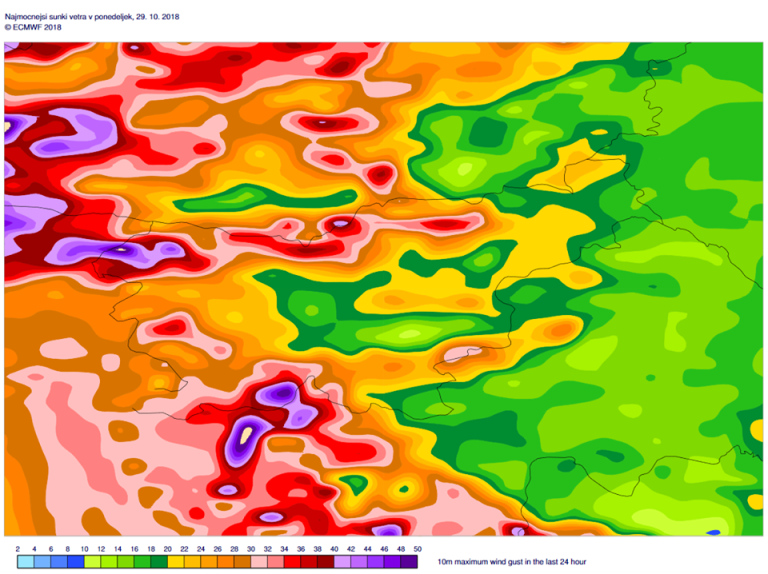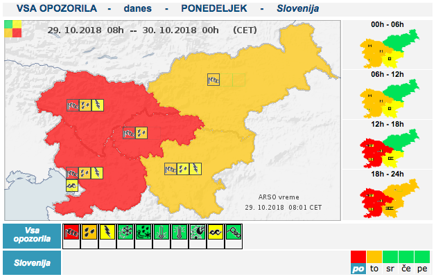 »Žal pričakujemo pojav obsežnejših vetrolomov, zato smo za nekatere dele države objavili rdečo stopnjo vremenske ogroženosti,« dodajajo državni meteorologi.