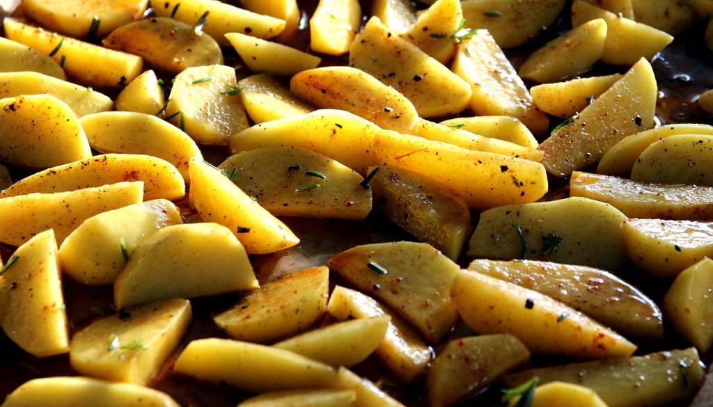 Če imate radi začimbe, jih dodajte takoj, ko krompir položite v vročo ponev.