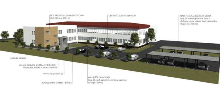 Ob tem bosta urejena tudi nadstreška v velikosti približno 205 kvadratnih metrov za potrebe parkiranja službenih vozil in odlaganja infektivnih odpadkov.