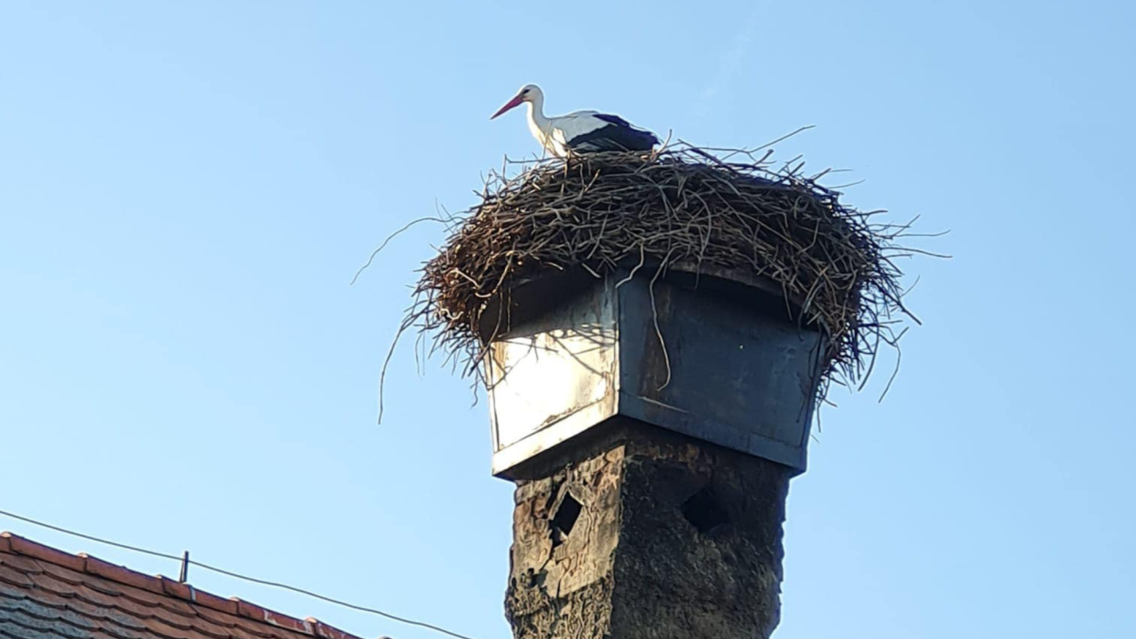 Štorklja se je vrnila na dimnik gostilne Lovenjak v Polani pri Murski Soboti.