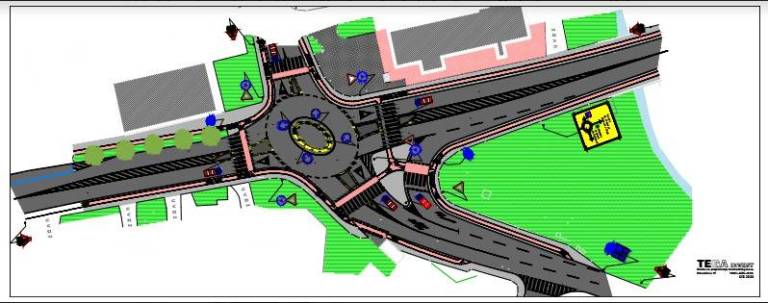 Obstoječe štirikrako križišče bo v prihodnje preurejeno v montažno krožišče z namenom izboljšanja prepustnosti na priključnih krakih. Sredinski otok in ločilni otoki bodo izvedeni z montažnimi elementi.