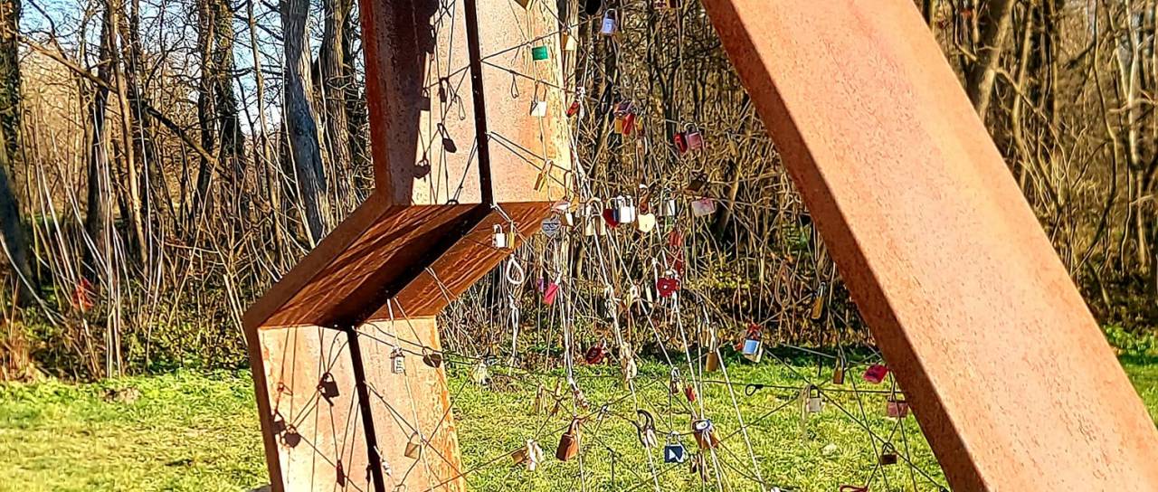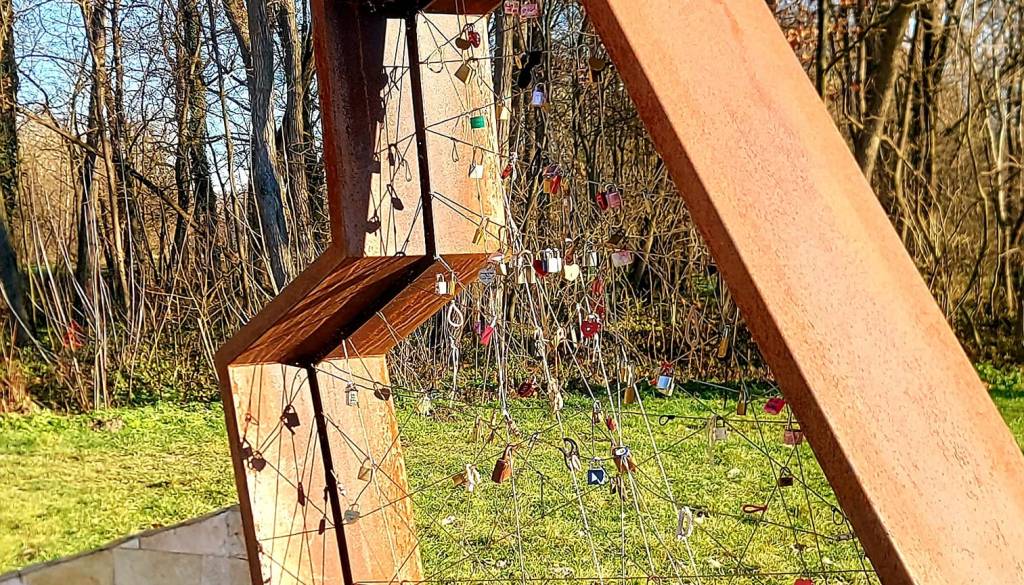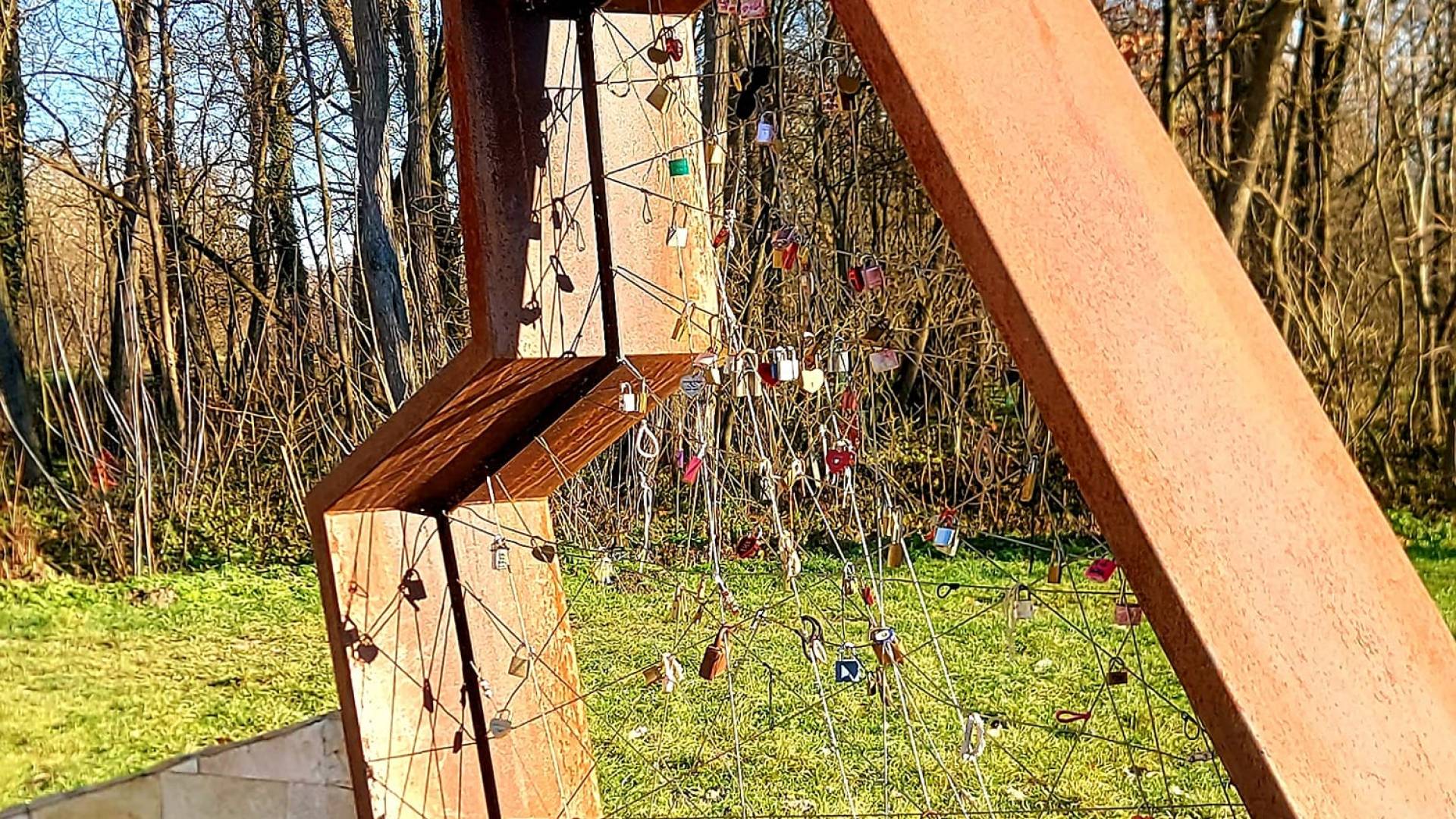 Otok ljubezni v Ižakovcih, priljubljena turistična točka, kjer lahko zaljubljeni za seboj pustijo različne vrste ključavnic.