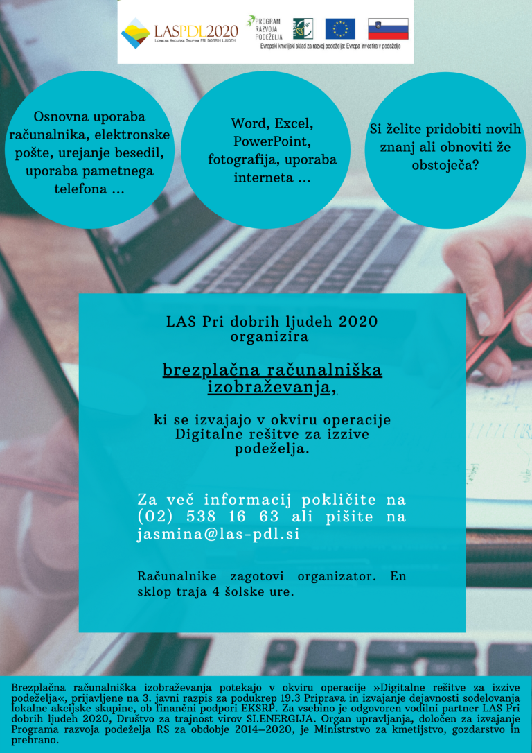 LAS Pri dobrih ljudeh 2020 po uspešno izvedenem prvem sklopu nadaljuje z izvajanjem brezplačnih računalniških izobraževanj, ki potekajo v okviru operacije Digitalne rešitve za izzive podeželja.