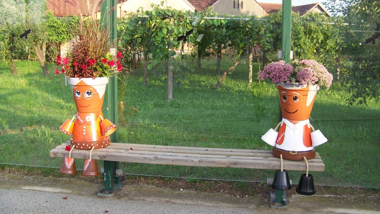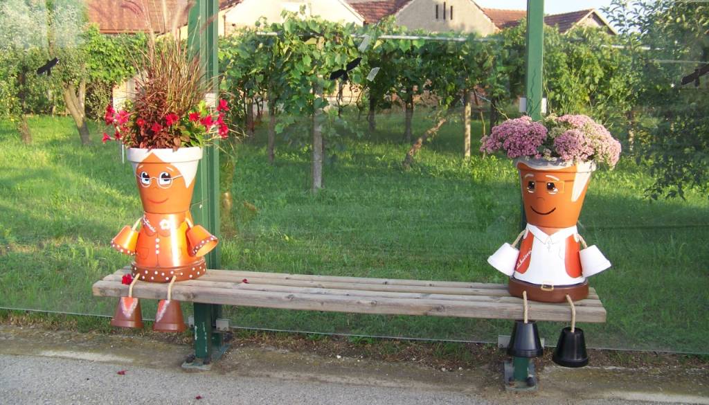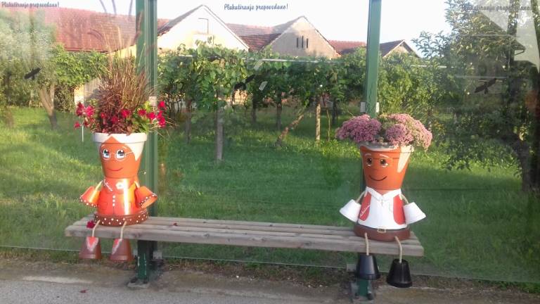 Na cvetlične lončke je Alenka Fujs narisala dedka in babico, člani društva pa so lončke okrasili s cvetjem. Veliki cvetlični lončki so za domačine in vse, ki obiščejo Lukačevce in Mlajtince prava paša za oči.