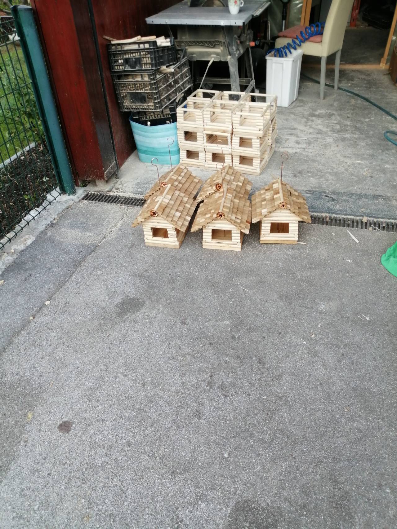 Ptičje hiške od začetka do konca izdela povsem sam. »Običajno jih sočasno delam od deset do 15,« razlaga.