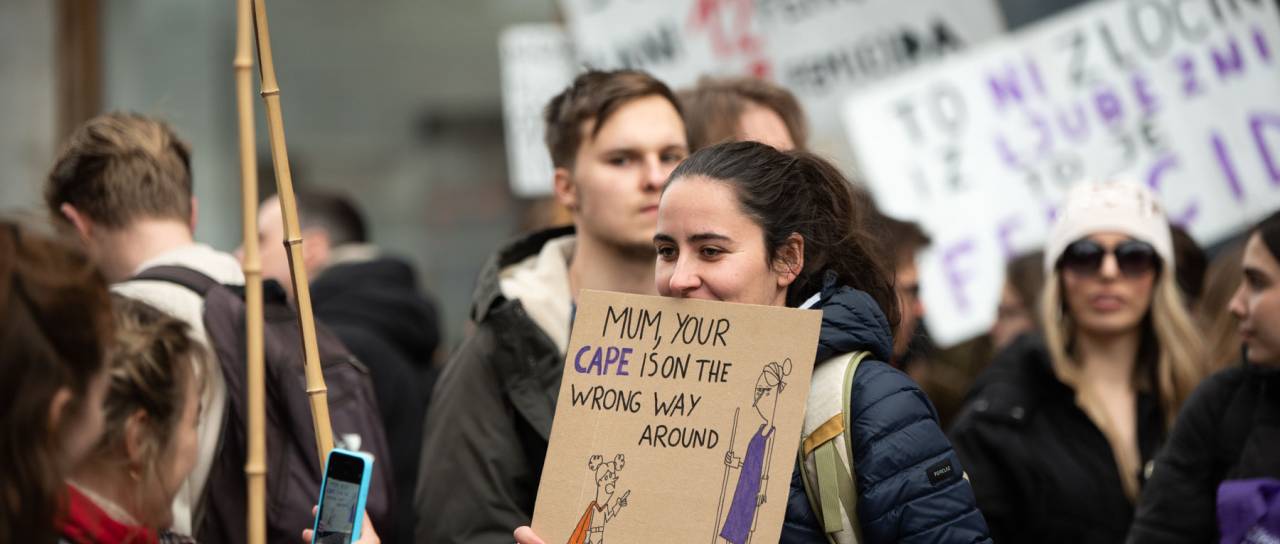 Na Kongresnem trgu v Ljubljani se danes odvija feministični protest ob 8. marcu, in sicer pod geslom Patriarhat ubija!