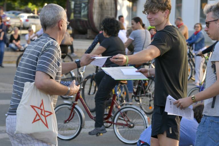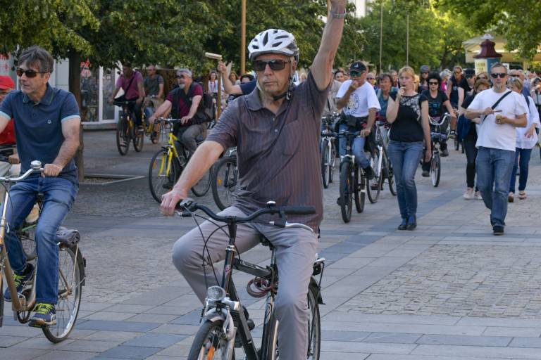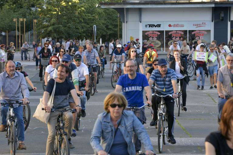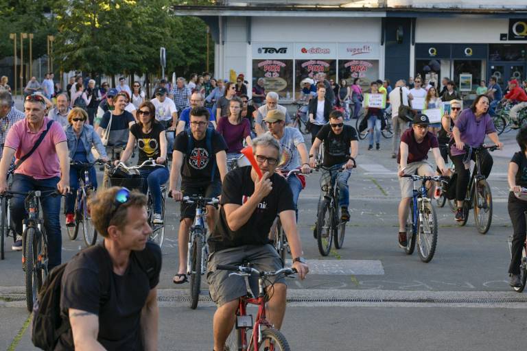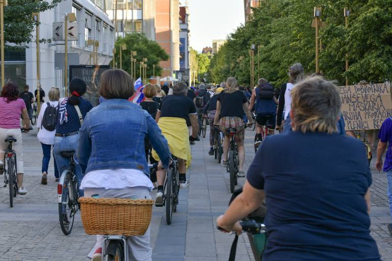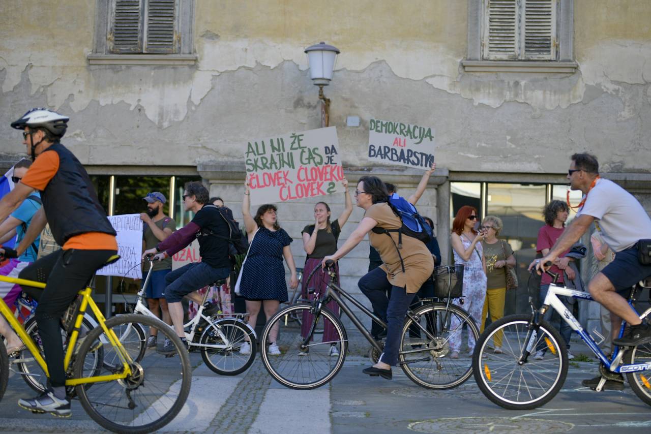 Vsak petek od 1. maja so se protestniki ob 19.00 zbrali na Trgu svobode in s kolesi krožili okoli spomenika NOB. Tako je bilo tudi na tokratnem protestu, na katerem se je zbralo več kot 600 kolesarjev in pešcev.