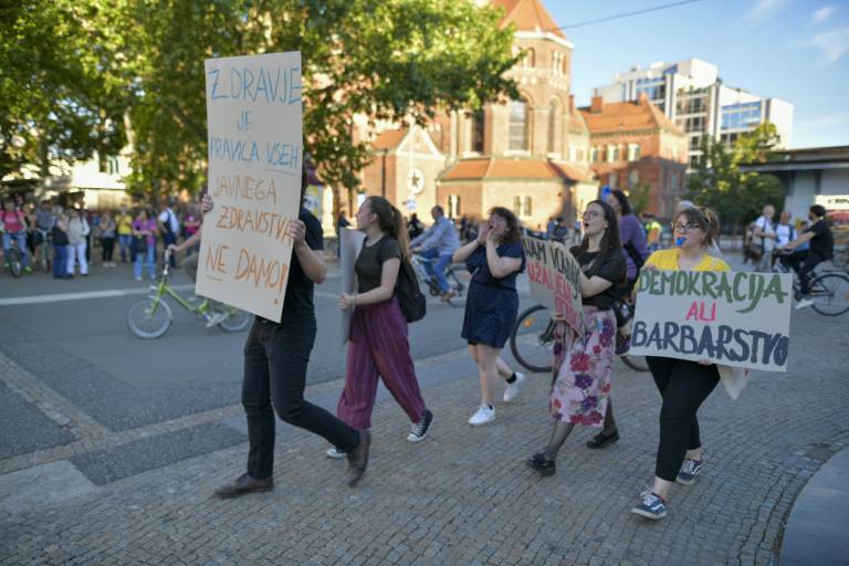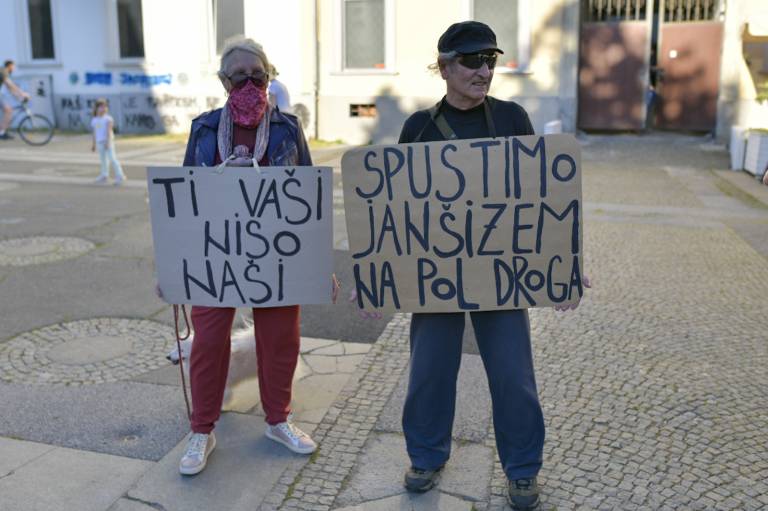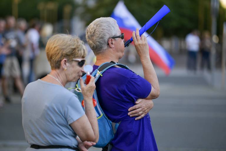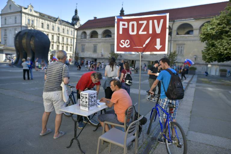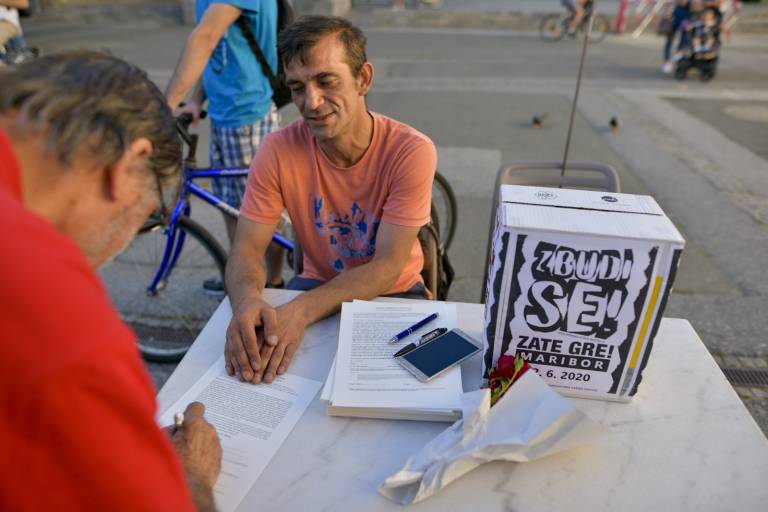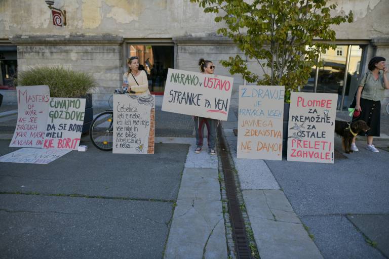 Kakšnih ducat protestnikov se je tokrat zbralo tudi na Trgu zmage v Murski Soboti.