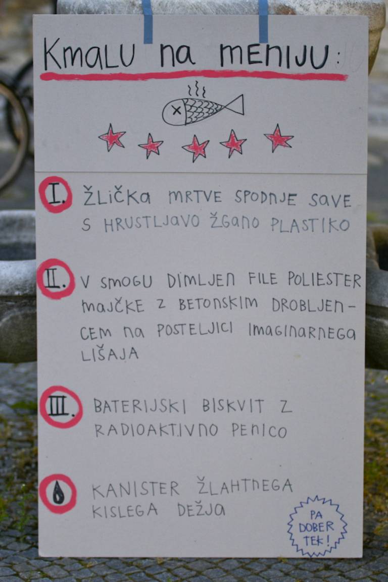 »Kaj ti bo narava, če maš beton?« in »Janez, zakaj me sovražiš?« so protestniki s kredo napisali na tla. Risanje s kredami po tleh je postal še en način protestiranja po tistem, ko so policisti zaradi tega početja začeli obravnavati protestnike.