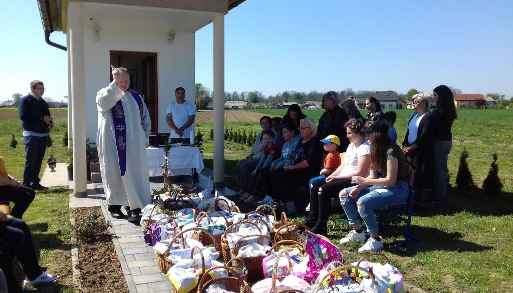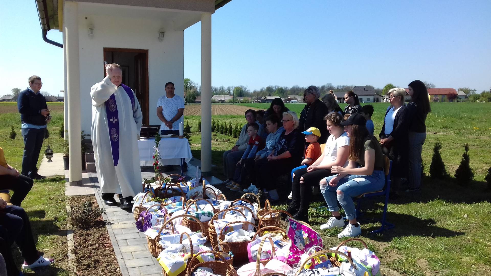 Prvi blagoslov velikonočnih jedil pri romski kapeli je skupaj z župnijo Tišina pripravil vaški odbor Vanča vas- Borejci.