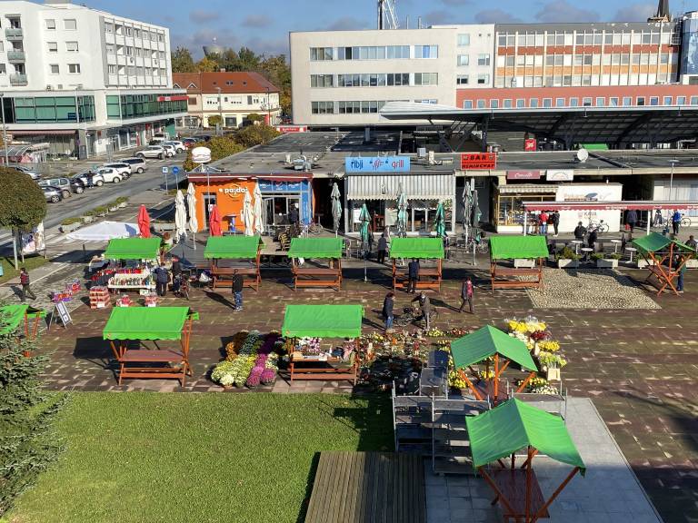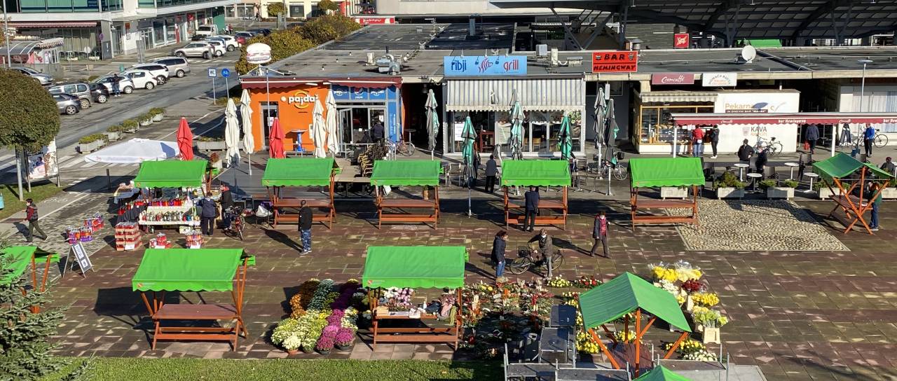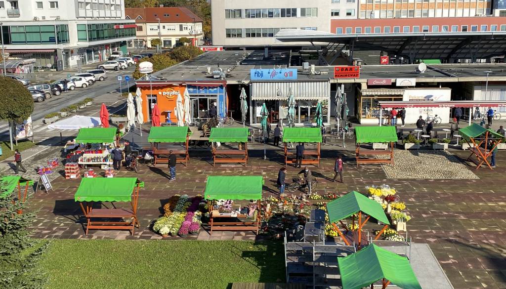 Soboška Komunala je med lokali tržnice in galerijo ter na Trgu kulture postavila 22 stojnic za razširjeno prodajo cvetja, aranžmajev in sveč.