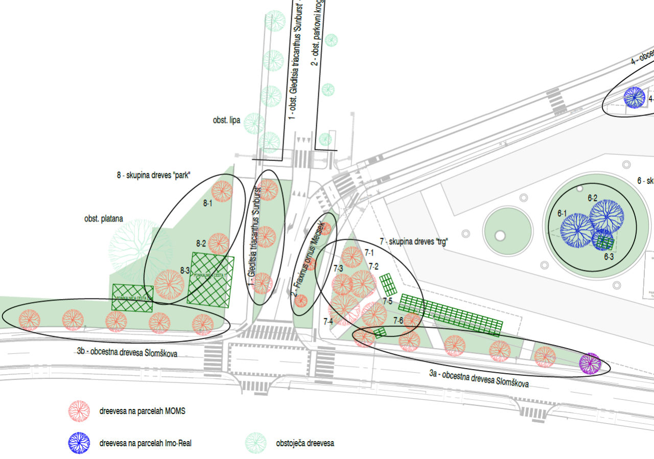 Široki pločniki, ki so že sedaj opazni na preboju Kocljeve ulice, ne bodo edina novost, poleg že obstoječe ureditve s strani severnega dela Kocljeve ulice, bodo v začetku aprila na zahodni strani preboja s Kocljeve ulice zasajena drevesa in zelenica.