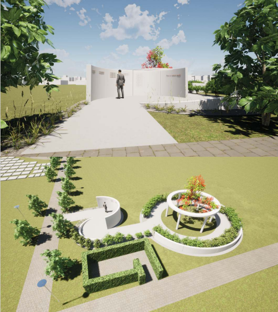 Pri idejni zasnovi prostora so uredili več grajenih struktur, spominski zid s prostorom za napis imena pokojnih, spominsko obeležje na sredini območja za raztros pepela in krajna zamejitvena stena, ki se dviga iz tal in se v drugem krogu spusti nazaj v tla.