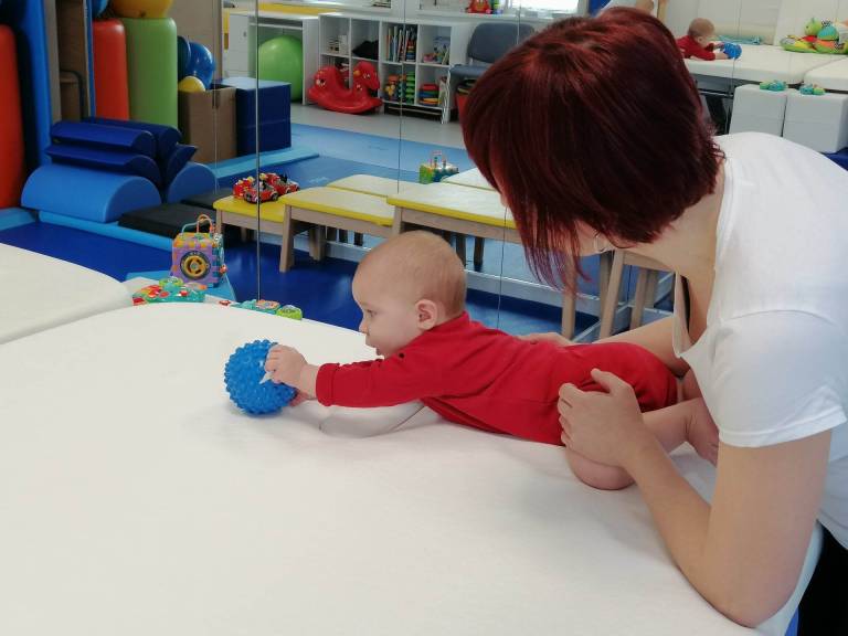 - Fizioterapevt: s specialnimi znanji iz področja nevrofizioterapije otrok obravnava odstopanja predvsem na področju gibalnega razvoja oz. grobe motorike. Spodbuja in educira tudi starše ali skrbnike, ki imajo skupaj s terapevtom ključno vlogo pri vzpostavljanju ustreznih gibalnih vzorcev.